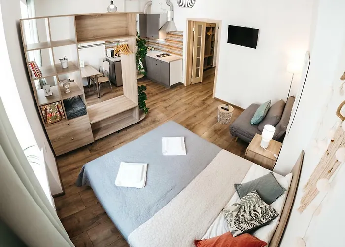 公寓配备微波炉,厨具和洗衣机. 离Puppet Theatre汽车站仅有150米.